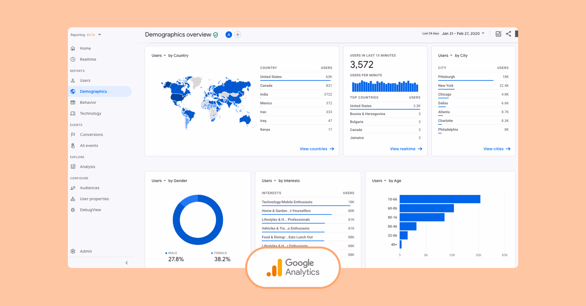Detailed segmentation: break down data by location, device, engagement time and more.